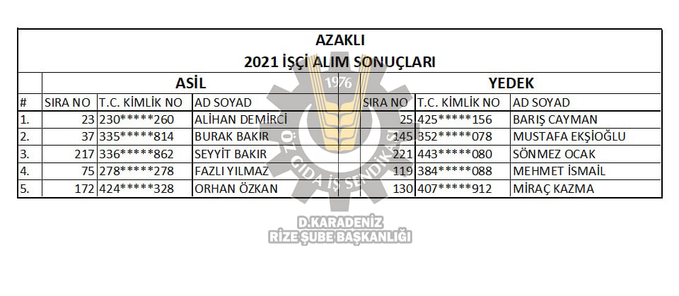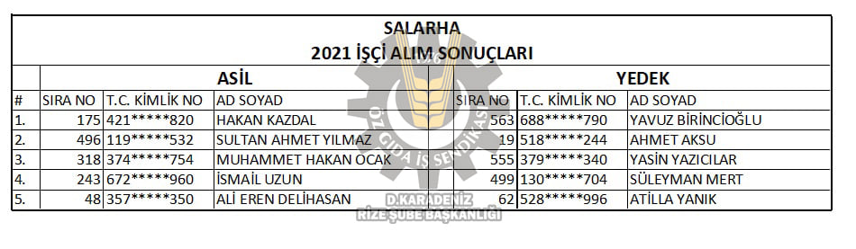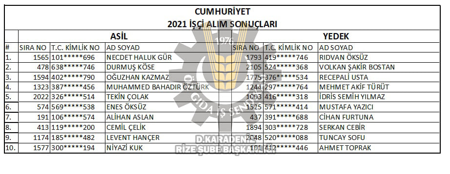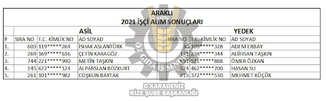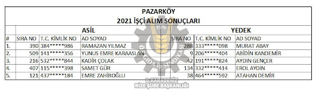 Kura çekimi en az başvuru yapılan fabrikadan başladı. Başvuru sayısına göre kura çekimi devam edecek. 211 başvuru ile Rize Çiftlik Fabrikası ilk kura çekimi yapılan fabrika oldu. Kurada asıl kadro kadar yedek çekiliyor.