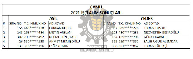 ASIL: 390 Ramazan Yılmaz - 509 Yunus Emre Karaaslan - 216 Kadir Çolak - 407 Samet Gür - 121 Emre Zahiroğlu